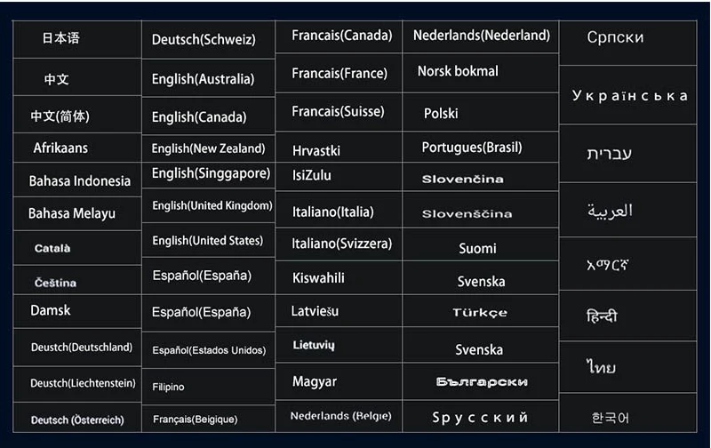 OSD Language: Chinese (Simplified),English,Arabic,Spanish,French,Finnish,Dutch,Japanese,Turkish,Russian,Hebrew,German,Korean,Italian,Portuguese,Chinese (Traditional),Danish,Thai,Swedish,Polish